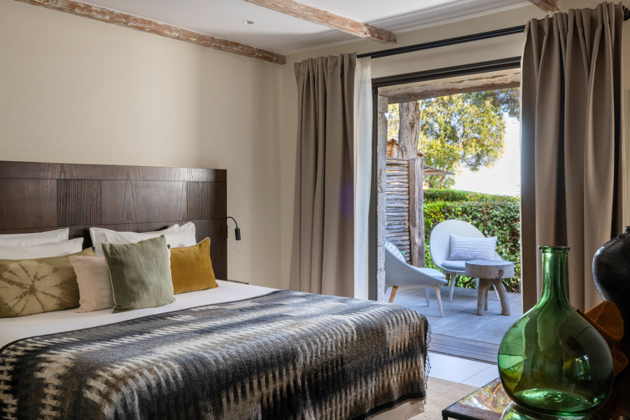 As a 5-star Relais & Châteaux property, Les Bergeries de Palombaggia offers a distinctly Corsican experience, where authenticity meets understated luxury. Natural stone, warm woods, and soft earthy tones define a setting that is both elegant and serene.